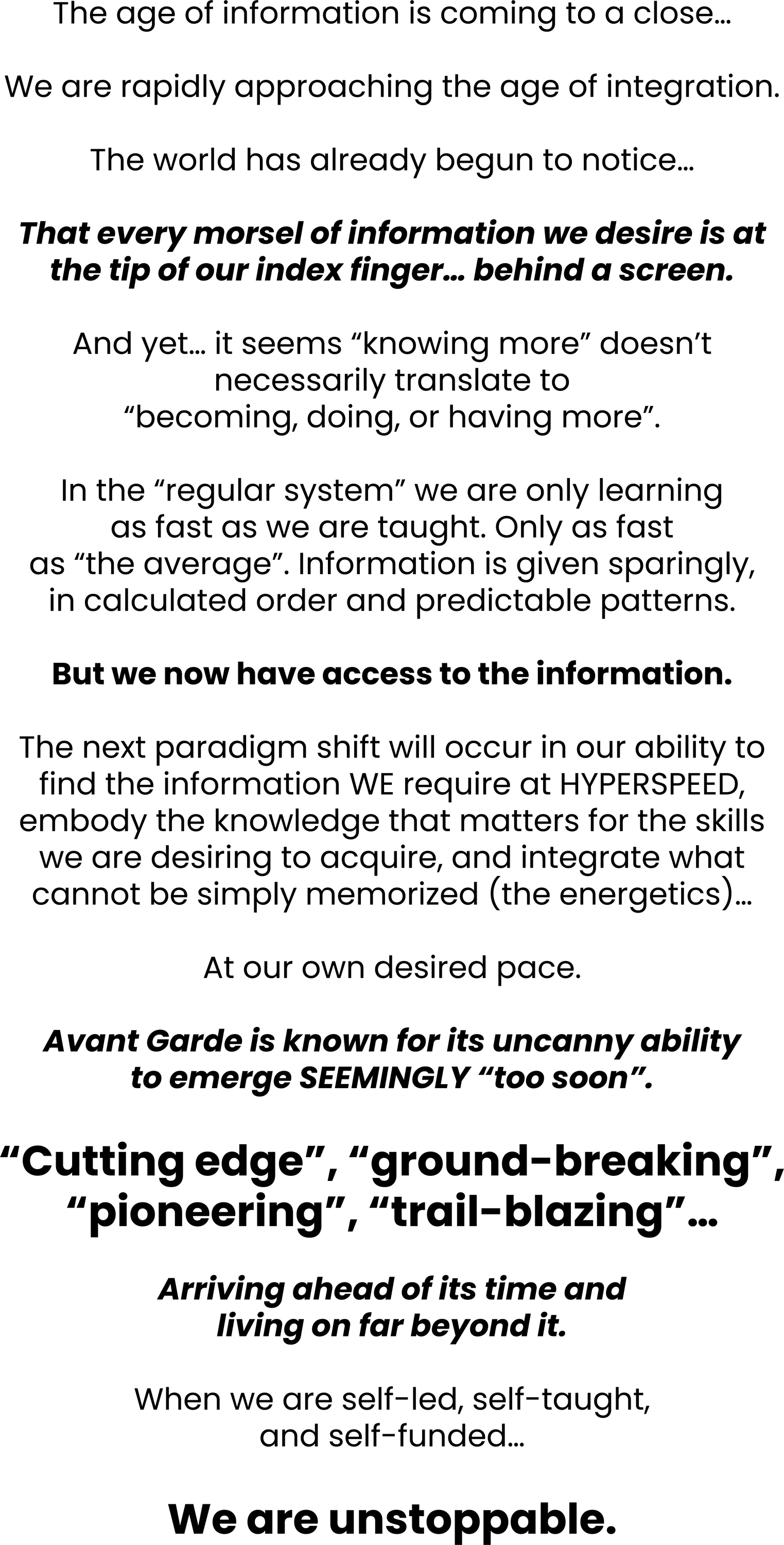 information, courses, programs. masterminds, mastercourses, coaching, plans, tools, or strategies.